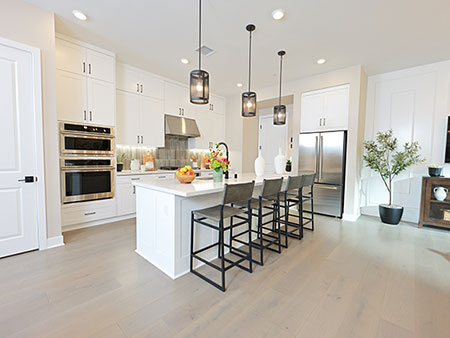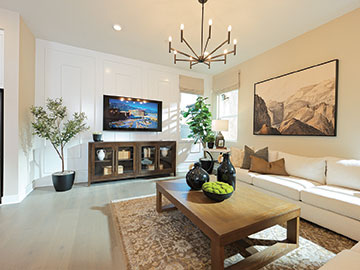 The move-in-ready four-bedroom, three-bath residence—built by Taylor Morrison—features sleek appliances, layered textures and breezy California-chic décor, all set within a resort-style neighborhood offering pools, pickleball and tennis courts and miles of walking trails under sunny Southern California skies.